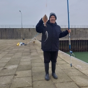 Zo we hadden afgesproken om te gaan vissen vrijdag de 12 december met me broer de pieren besteld bij de familie van dixhoorn was weer prima verzorgt en vertrokken na de stijger maar dat viel vies tegen geen plek dus na strand maar daar moet je betalen om gratis te staan later dus gebouwtje maar aangekomen moesten we weg handhaving zij hier mag je niet komen met de auto inverband met troep achterlaten dus maar gaan vissen auto op parkeer plaats gezet en alles klaar gezet een vissen en klopt er werd goed gevangen tot dat er 1 kwam vissen die roet in gooie die kon niet in gooide spoorniet maar hij had mij vast en me hengel brak in 2 en dan nog zeggen sorrie ik zij de handhaving komt zo en toen moest hij weg met de auto en dat deed hij maar kwam niet meer maar maar met 11 hengel verder eindstand was nico totaal 25 maal 2 zeebaarsjes 3 schar 20 wijting 2na mij toe ik had 15 wijting en2 schar om afte sluitengr jan en nico.