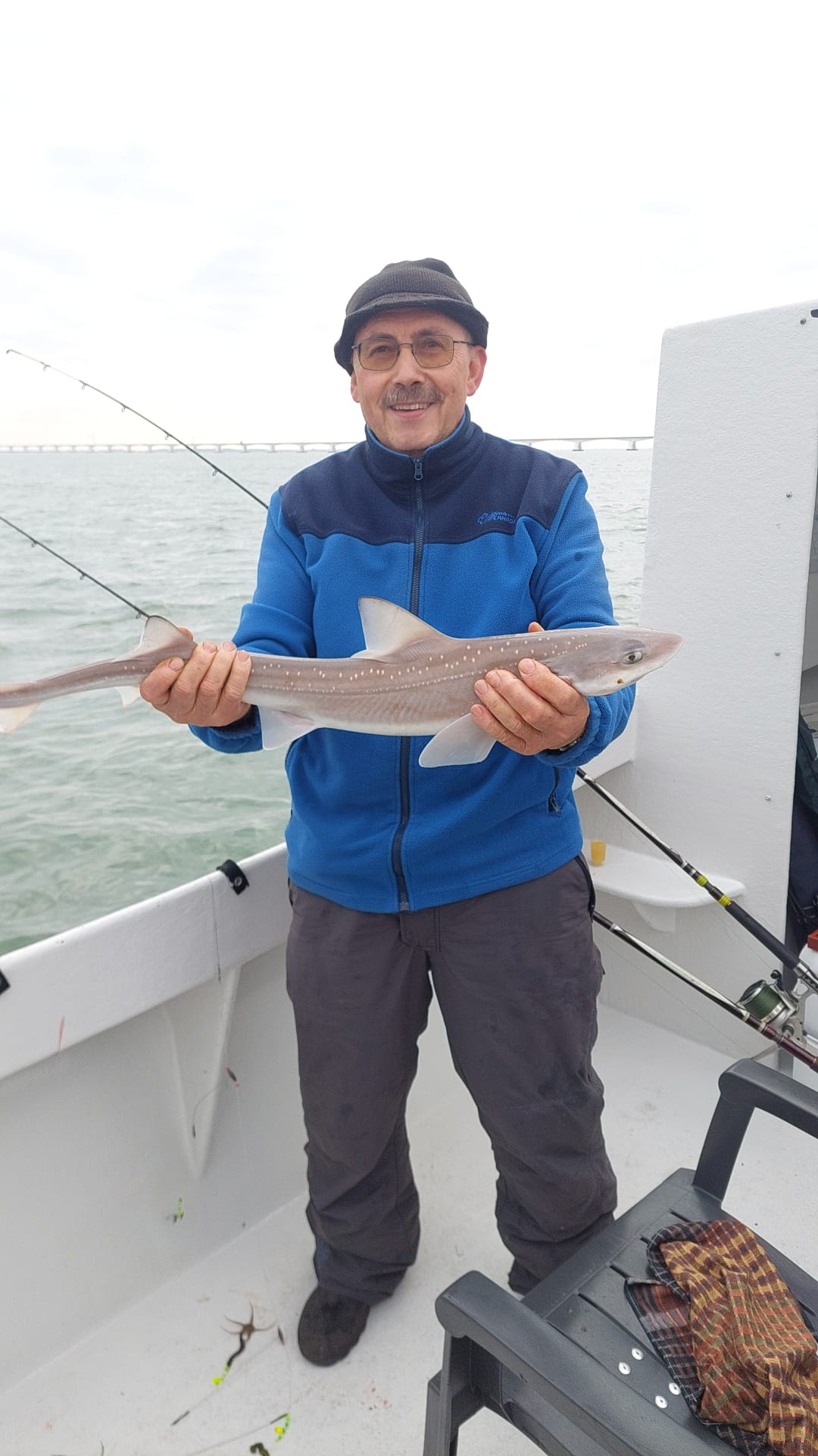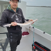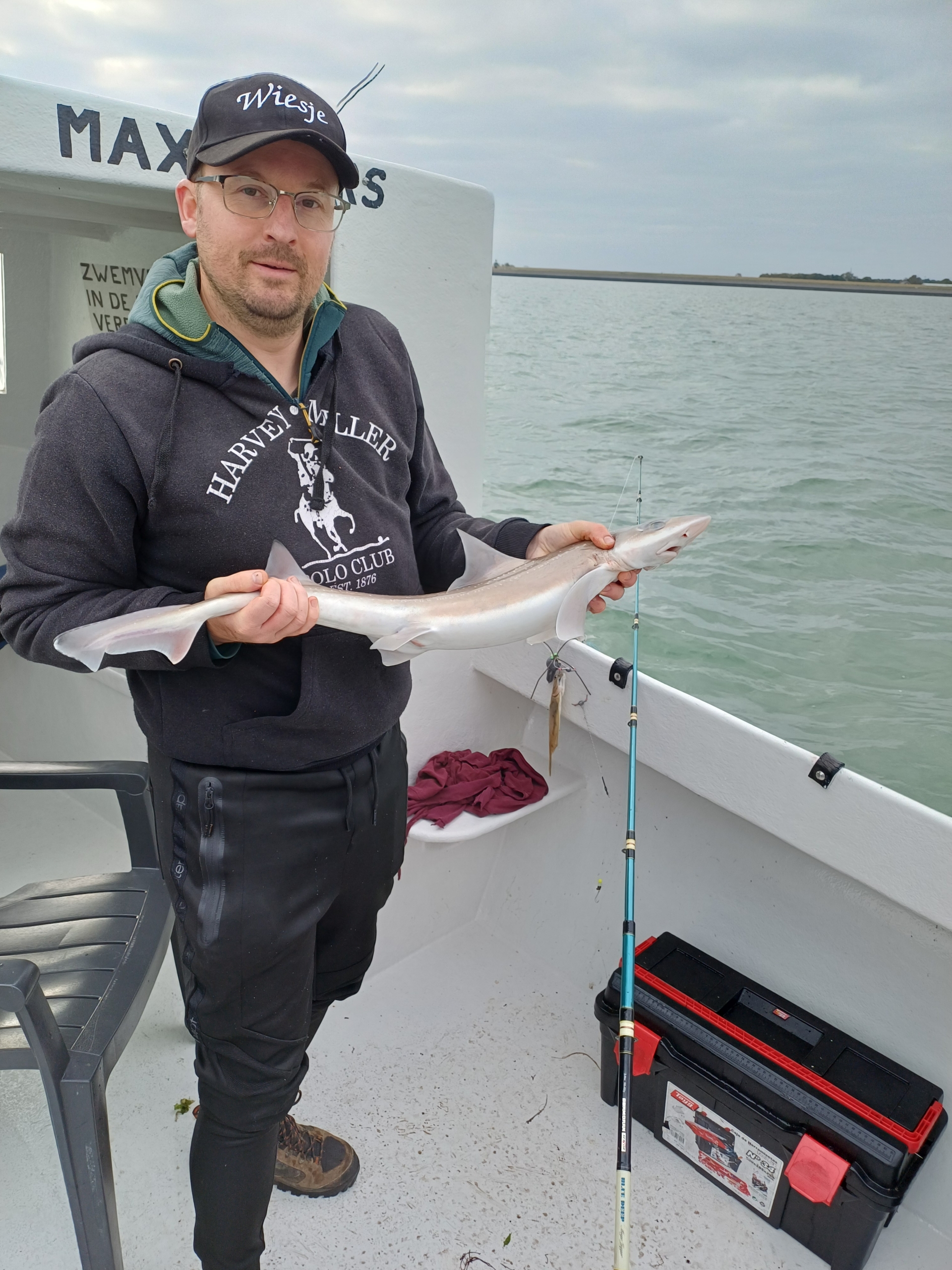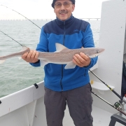 Heel de dag hebben we daar gevist met als resultaat: 15 maatse wijtingen, 58 maatse scharren, 2x gladde haaien, 1x hondshaai en 1x bot. Enkele andere soorten waren onder de maat: 1x pladijs, 4x zeebaarsjes en 2x steenbolk en de nodige scharren en wijtingen.