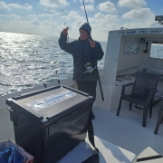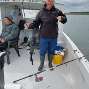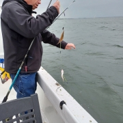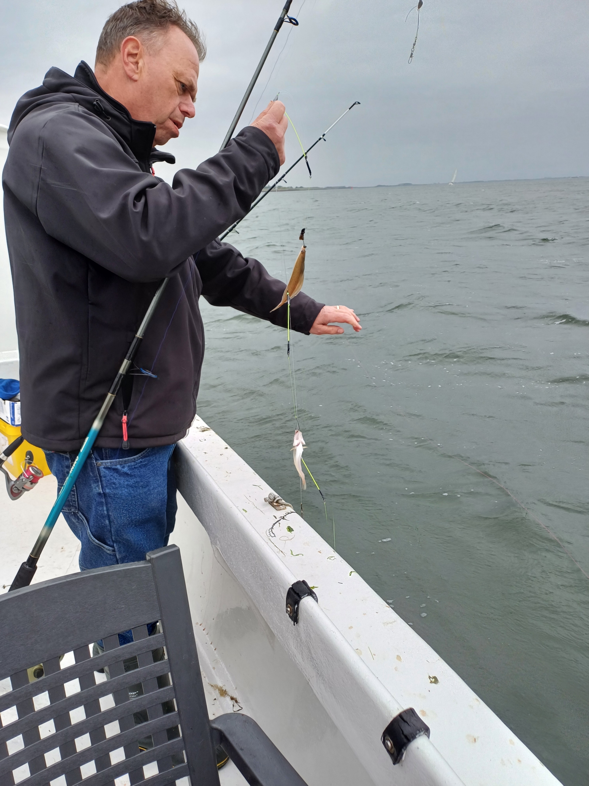 aan gekomen was het wel stroming maar tot de middag vingen we vis een die was ziek terug